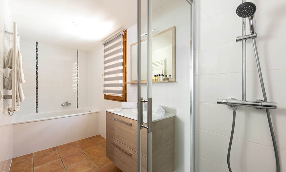 Situated opposite the Katie chalets and next door to the Eva, Bramble boasts top quality bedrooms, and the pick of the bunch are the two on the middle floor which are really spacious and with beautiful large bathrooms that have both a bath and a shower.