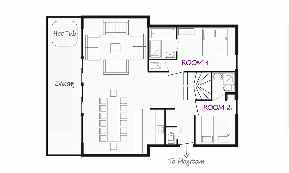 Situated opposite the Katie chalets and next door to the Eva, Bramble boasts a high standard of bedrooms and shares a separate playroom with Chalet Eva. There is a spacious lounge and dining room, a hot tub on the balcony and a sauna on the ground floor too.