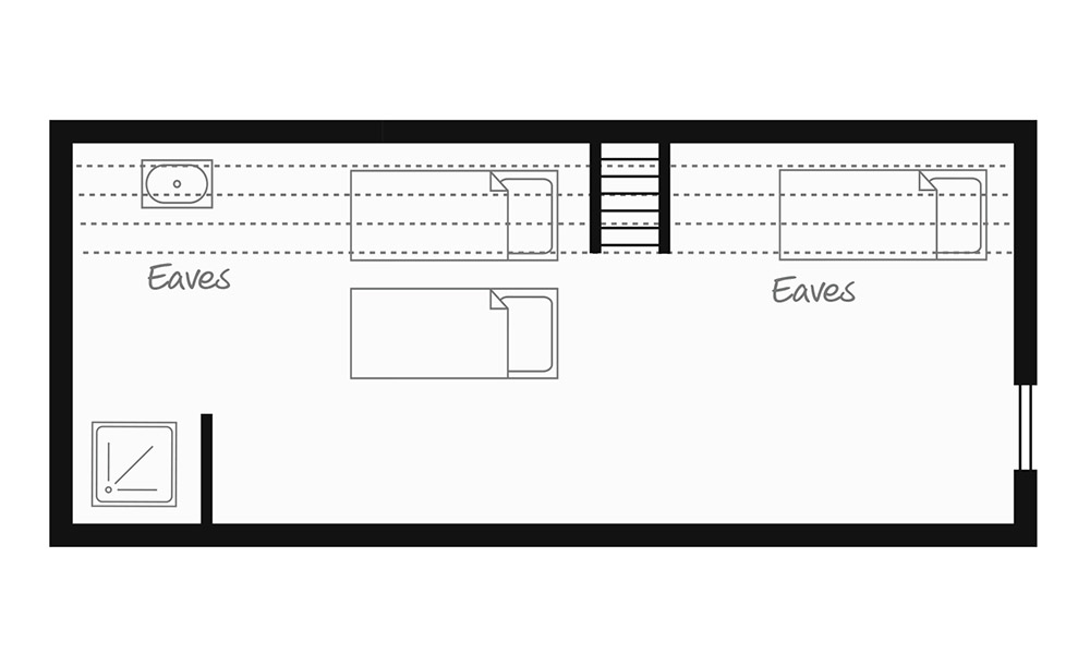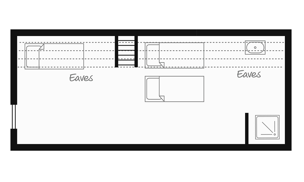 Sleeps 5 with space for a cot. Stairs up to lounge with balcony & single alcove bed, twin bedroom with ensuite bathroom/wc and space for a cot, twin and adjacent ensuite bathroom/wc (slightly limited headroom in bathroom)