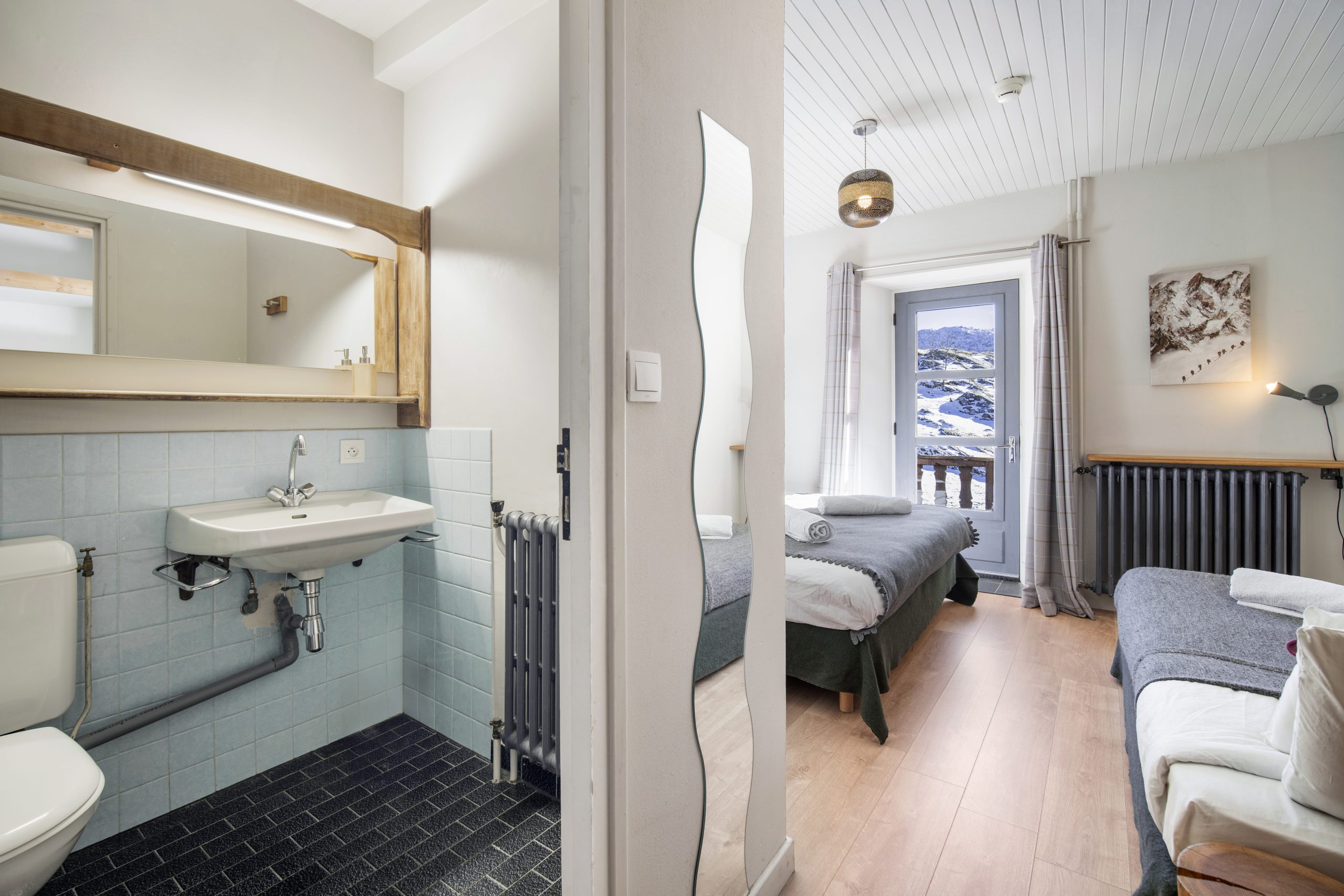 Sleeps 4. A family suite with twin beds and bunk beds. Ensuite bathroom with a bath, hand basin and toilet. Shared balcony with Room 12. Located on the First Floor.